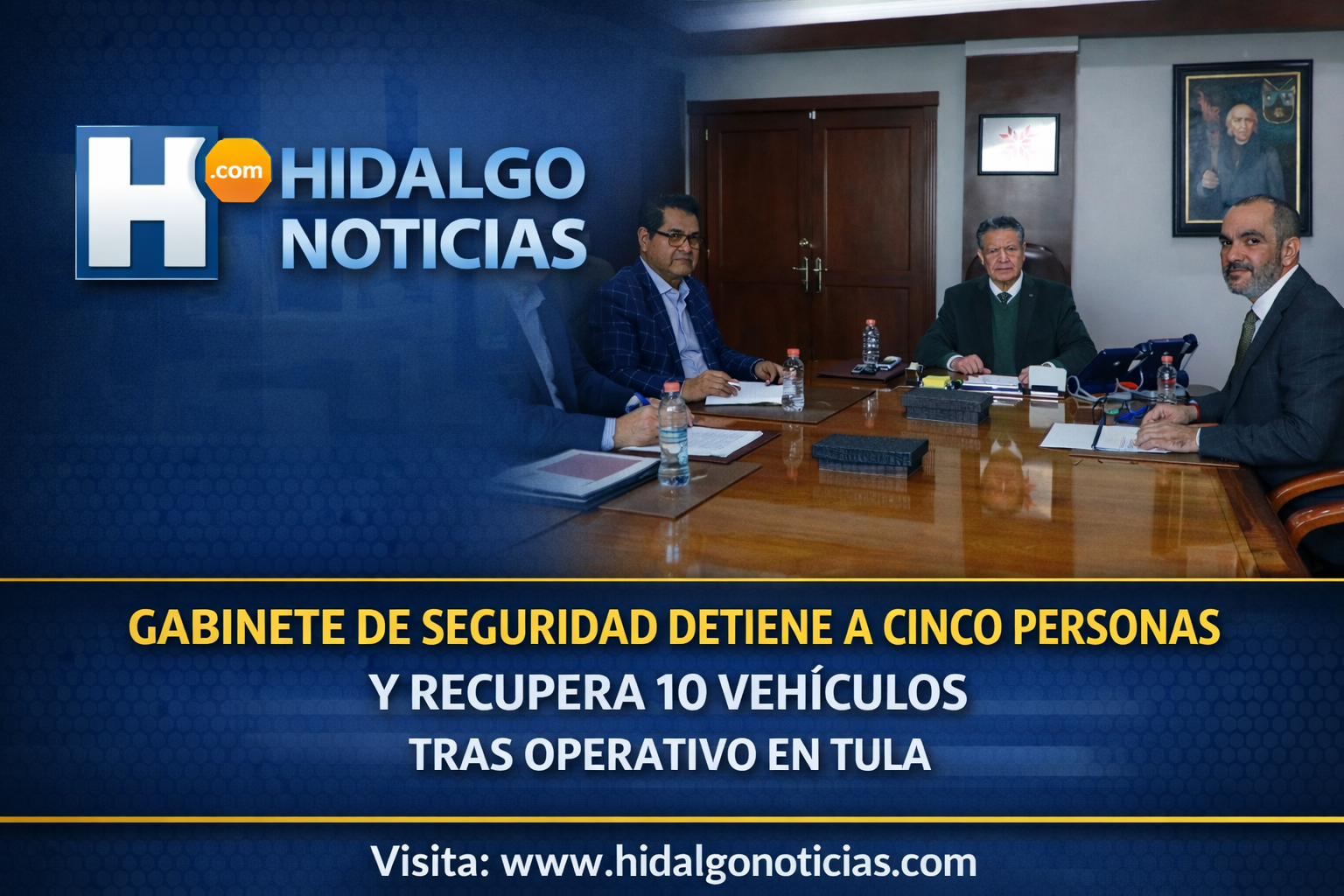 Enero de 2026, Pachuca de Soto, Hidalgo. Como resultado del despliegue operativo en distintas regiones del estado, el Gabinete de Seguridad reportó la recuperación de 10 vehículos con reporte de robo en la zona de Tula, así como el aseguramiento de un arma larga abastecida, 156 dosis de distintas sustancias y la detención de cinco personas, informó el gobernador Julio Menchaca Salazar durante la reunión semanal de evaluación.