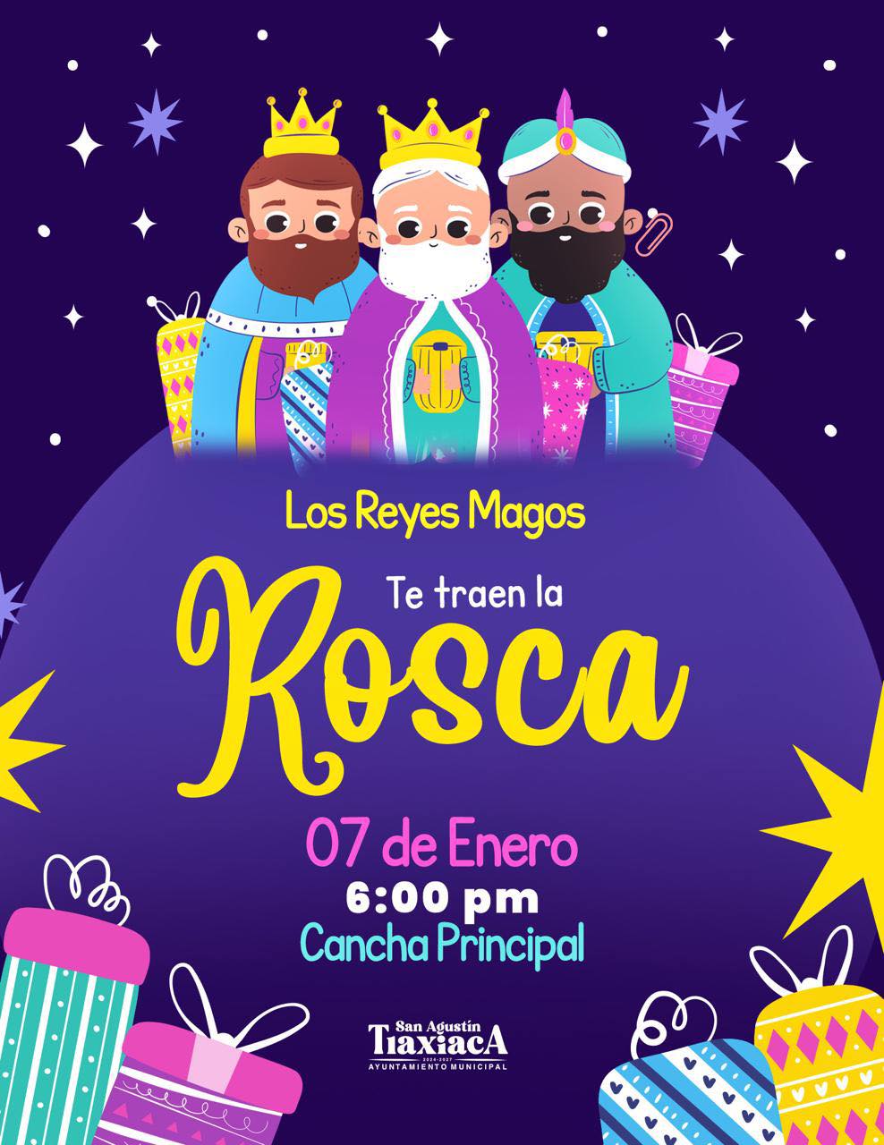 De manera complementaria, se anunció que este 7 de enero, a partir de las 6:00 de la tarde, se llevará a cabo la partida de rosca en la cancha principal, evento con el que se busca mantener vivas las tradiciones y generar espacios de encuentro comunitario. Las autoridades municipales invitaron a las familias a participar en estas actividades, pensadas para brindar momentos de esparcimiento en un ambiente seguro y ordenado.