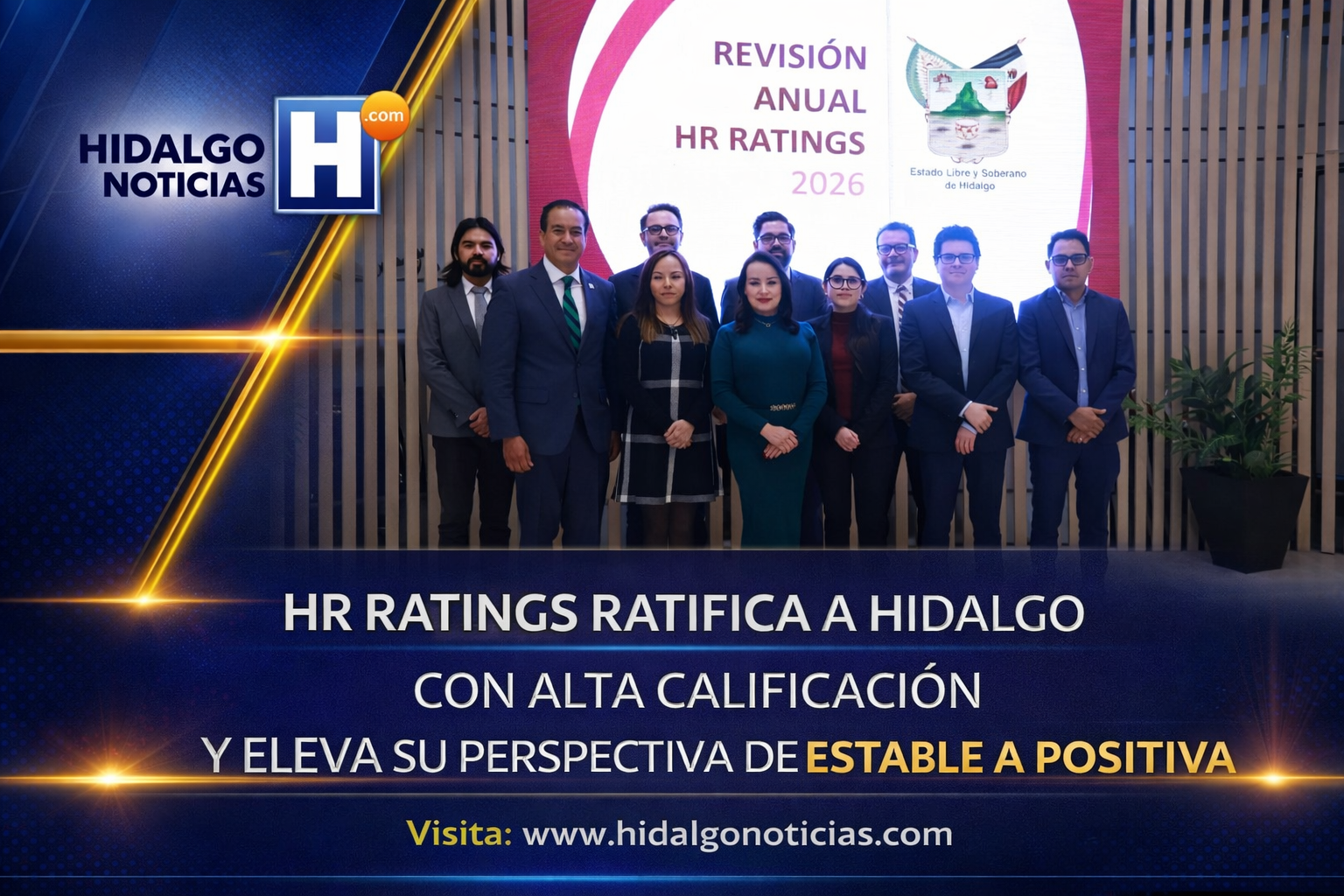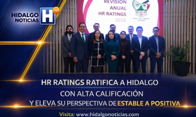 Pachuca, Hidalgo.— El estado de Hidalgo obtuvo la ratificación de su calificación crediticia en nivel HR AA+, además de mejorar su perspectiva de “estable” a “positiva”, resultado de las políticas públicas orientadas a fortalecer las finanzas estatales y la inversión en los municipios.