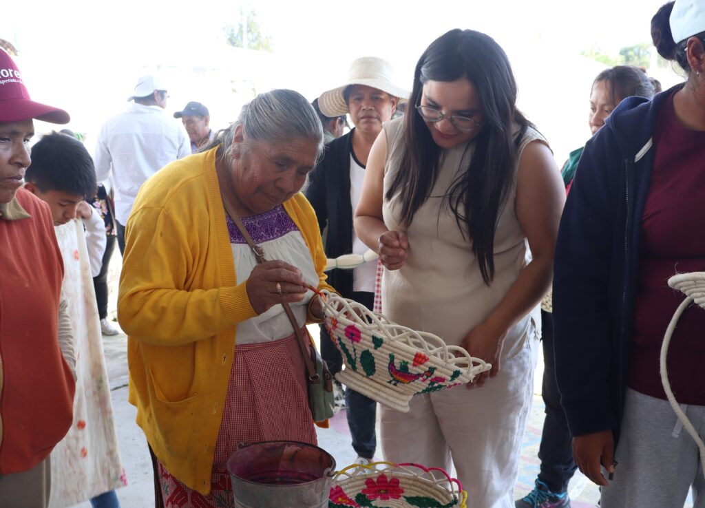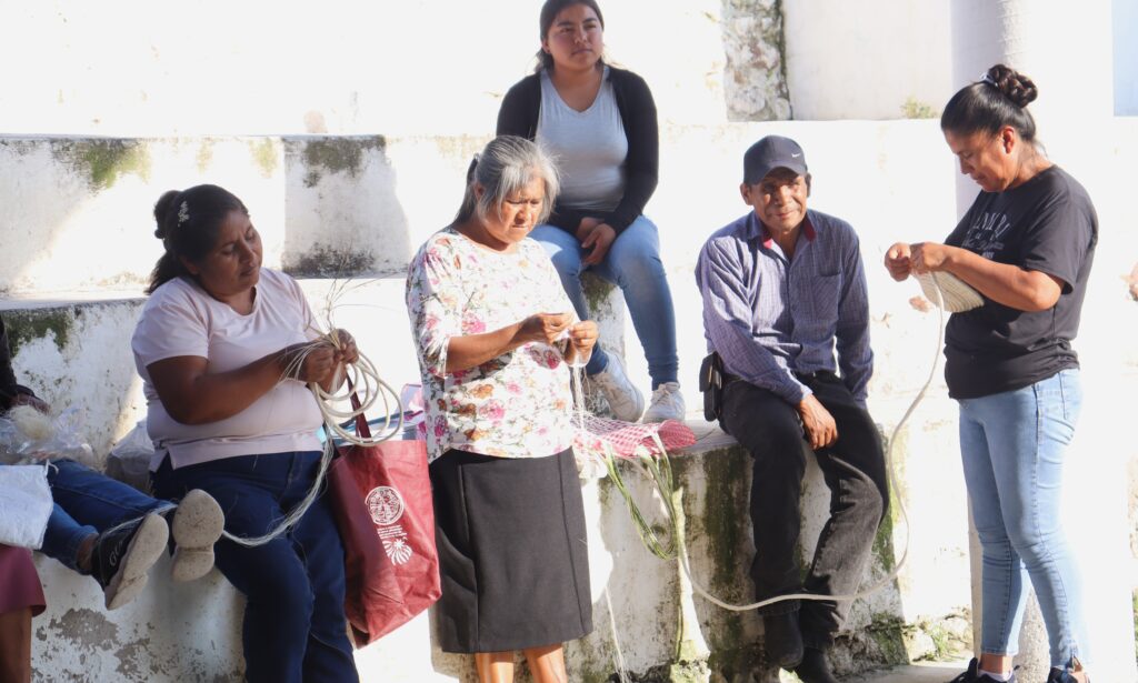 Las participantes desarrollaron habilidades en el trabajo con palma e ixtle durante diversas sesiones guiadas por la artesana Patricia Ramírez Lugo, beneficiaria del programa, quien ha dedicado gran parte de su vida al dominio de esta técnica. Su acompañamiento permitió que el grupo incorporara conocimientos prácticos y reforzara el valor de las tradiciones textiles de la zona.