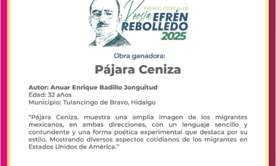 Pachuca, Hidalgo; septiembre de 2025.— Los Premios Estatales de Cuento Ricardo Garibay y de Poesía Efrén Rebolledo 2025 distinguieron a escritoras y escritores hidalguenses que han...