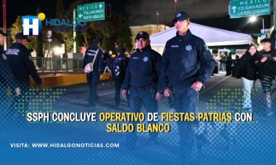 Pachuca, Hgo., 16 de septiembre de 2025.– La Secretaría de Seguridad Pública de Hidalgo (SSPH) informó que el operativo especial desplegado con motivo de la celebración...