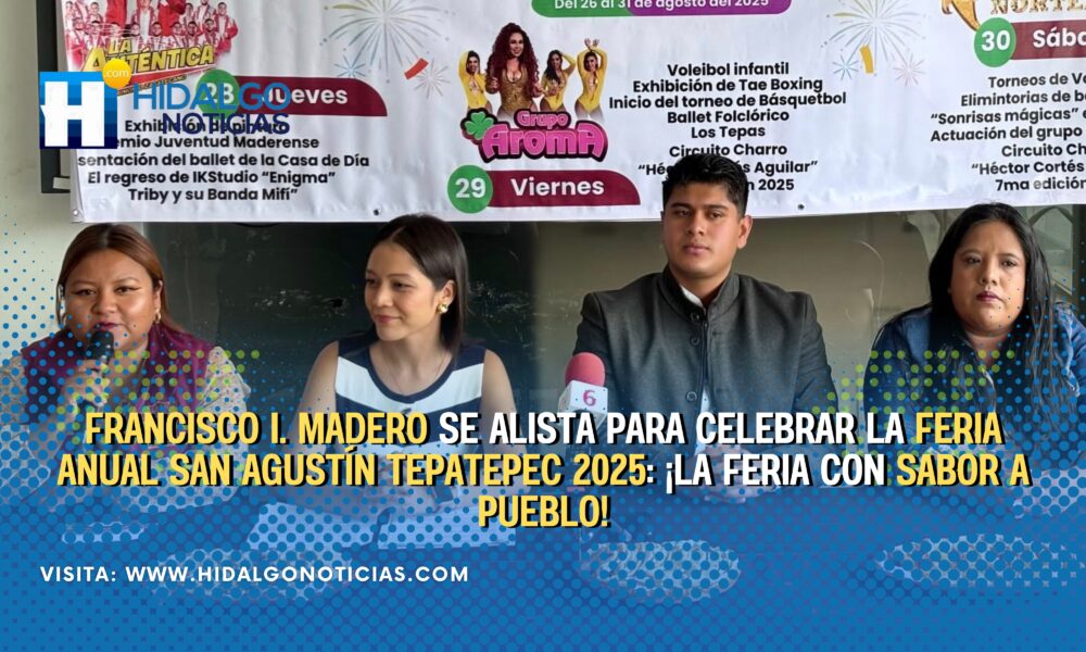 Francisco I. Madero, Hgo., 21 de agosto de 2025.– Del 26 al 31 de agosto, Tepatepec será escenario de una de las festividades más representativas del...