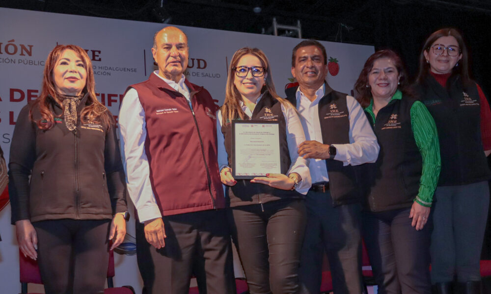 16 de noviembre de 2025, Pachuca, Hidalgo.El secretario de Educación Pública de Hidalgo, Natividad Castrejón Valdez, y la titular de la Secretaría de Salud estatal, Vanesa...