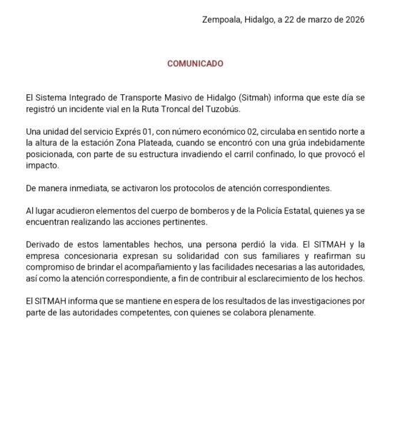 Este jueves se registro un alarmante suceso en la Carretera Tula – Tepetitlán, específicamente a la altura de la colonia San Francisco Bojay, en el municipio...