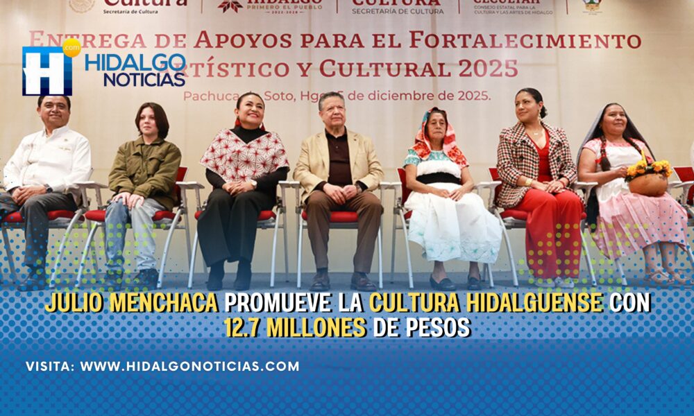 Pachuca, 5 de diciembre de 2025. El gobernador Julio Menchaca Salazar encabezó la entrega de los Apoyos para el Fortalecimiento Artístico y Cultural 2025, beneficio otorgado...