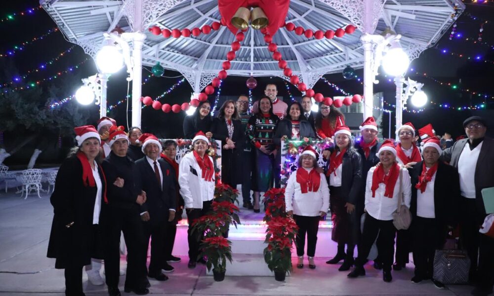 2025, Pachuca de Soto, Hidalgo. En el marco del encendido del árbol navideño en el Centro de Expresión para el Adulto Mayor (CEAM), la presidenta del...