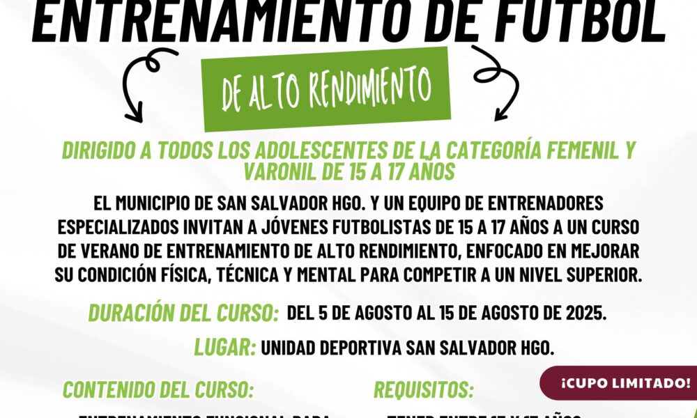 San Salvador, Hidalgo, 29 de julio de 2025. El gobierno municipal de San Salvador, en coordinación con especialistas en preparación física y desarrollo técnico deportivo, anunció...