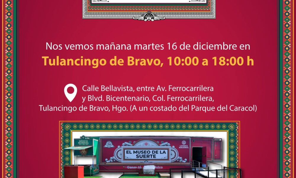Diciembre de 2025, Tulancingo de Bravo, Hidalgo.– El Museo de la Suerte, espacio itinerante impulsado por la Lotería Nacional, continúa su recorrido por el estado de...