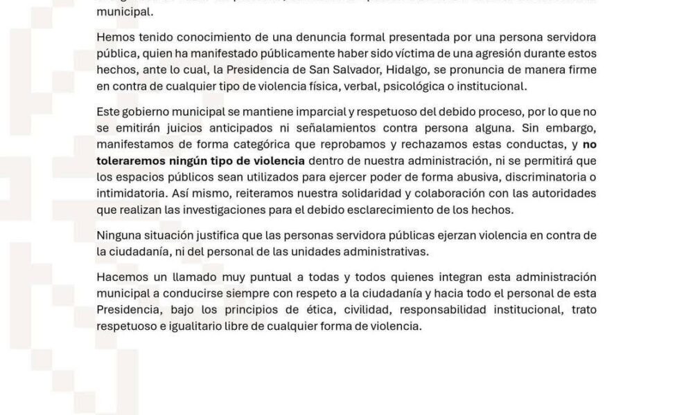 San Salvador, Hgo., 17 de julio de 2025.– Luego de los hechos ocurridos el pasado lunes 14 de julio en el Ayuntamiento de San Salvador, las...