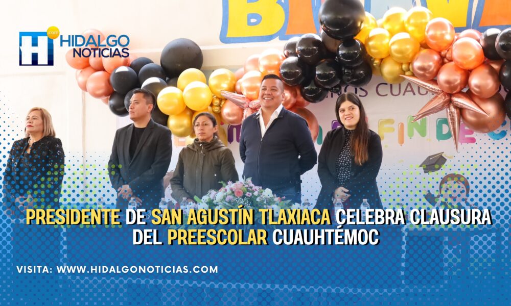 San Agustín Tlaxiaca, Hgo., 16 de julio de 2025. El presidente municipal Mario David Medina Hernández participó en la ceremonia de clausura del ciclo escolar del...