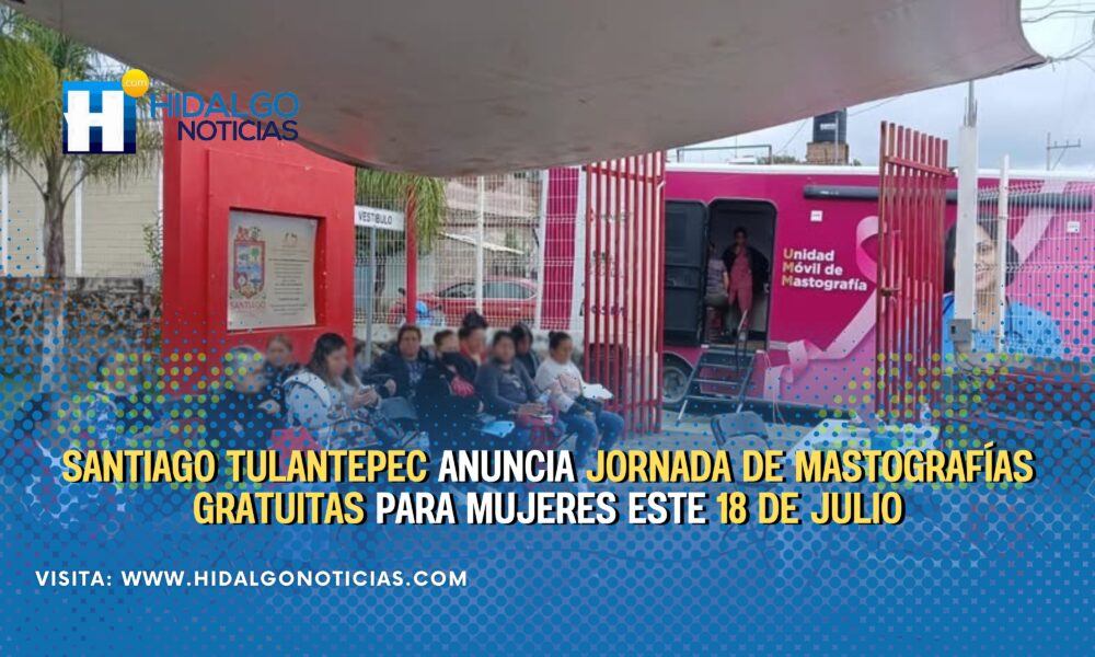 Santiago Tulantepec, Hgo., 6 de julio de 2025.— Mujeres del municipio de Santiago Tulantepec podrán acceder a estudios médicos gratuitos y especializados el próximo 18 de...