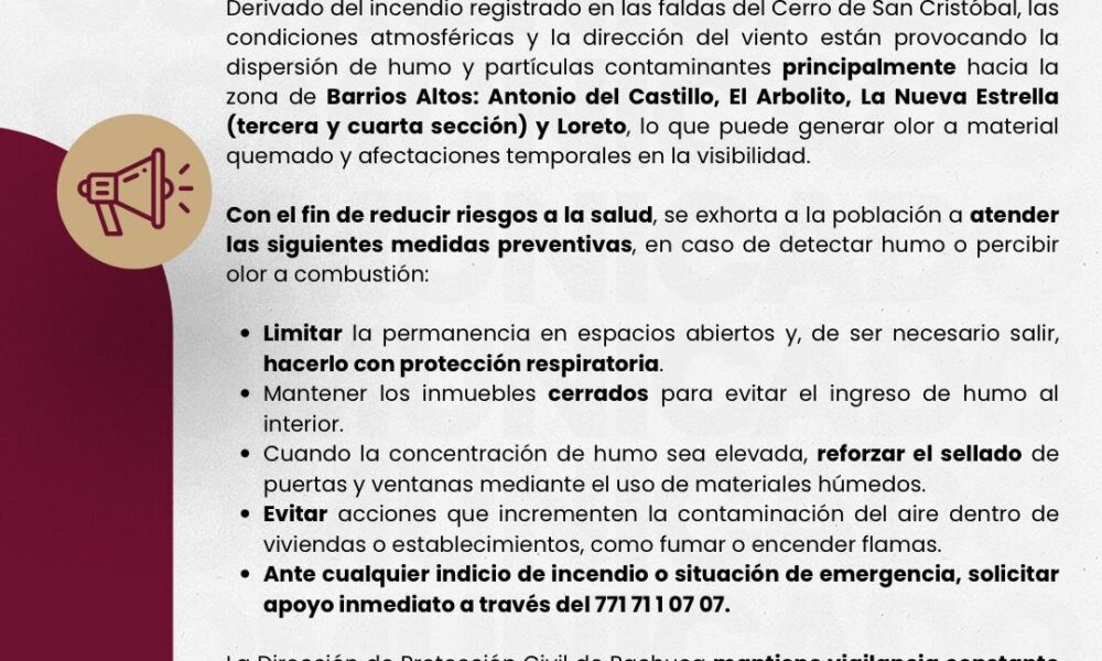 📌 24 de enero de 2026, Pachuca de Soto, Hidalgo. Tras el incendio registrado en las faldas del Cerro de San Cristóbal, las condiciones atmosféricas y...