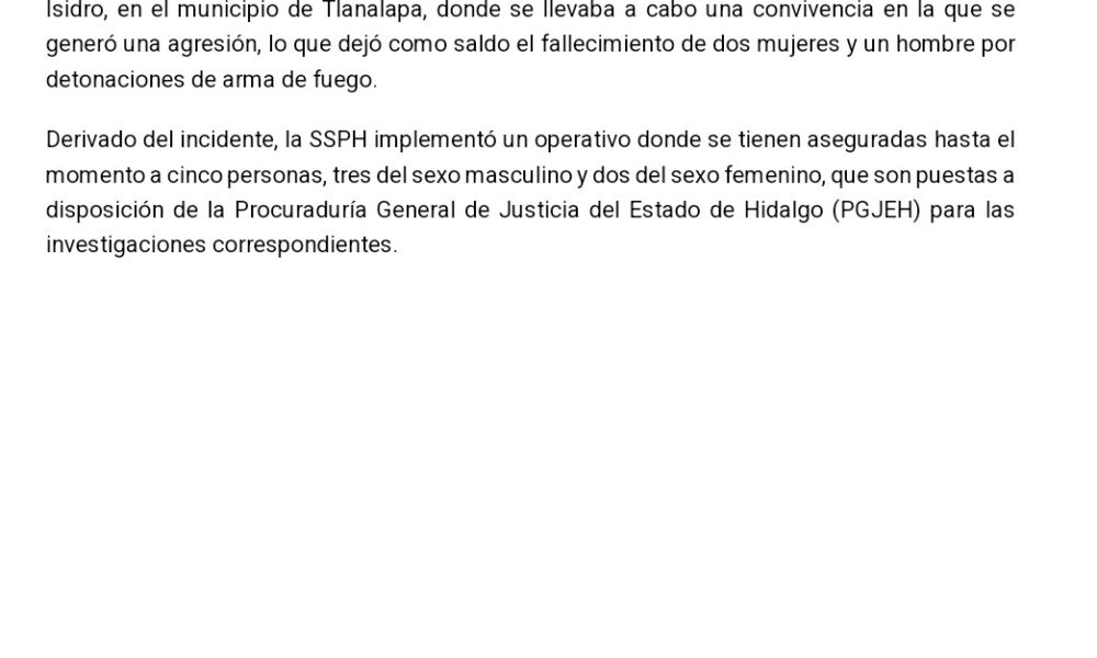 Una agresión registrada en un domicilio de Tlanalapa dejó tres personas sin vida y cinco detenidos tras un operativo de seguridad.