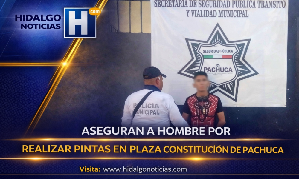 Un hombre de 26 años fue asegurado en Pachuca por realizar pintas en bancas de Plaza Constitución durante un recorrido policial.